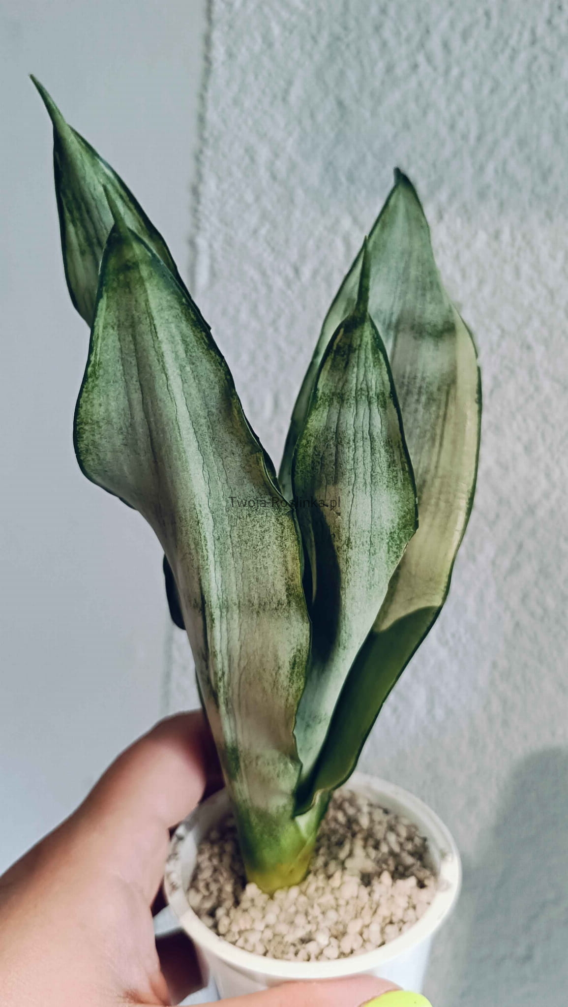 Idealna dla początkujących oraz kolekcjonerów, którzy szukają jasnej, eleganckiej sansewierii z delikatnym, artystycznym wzorem.