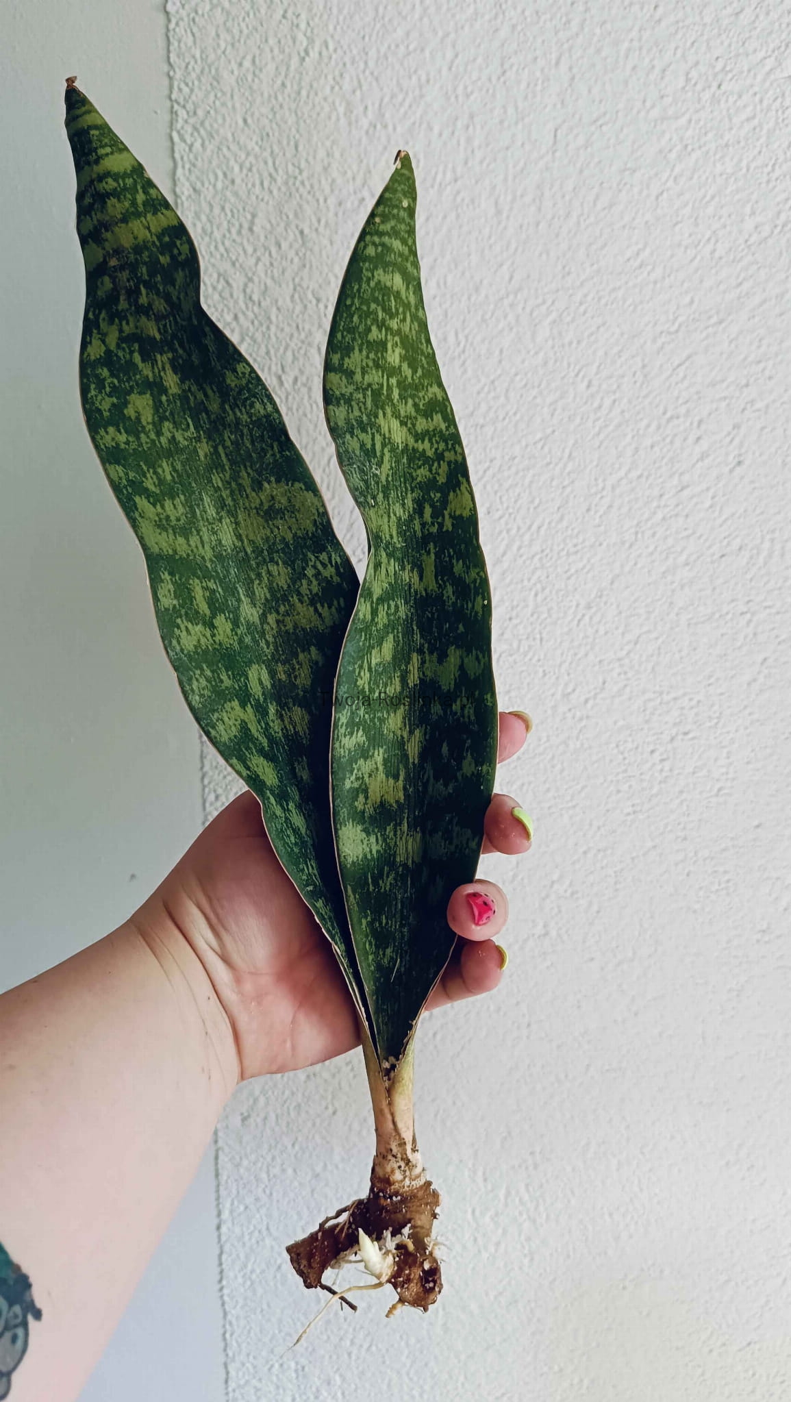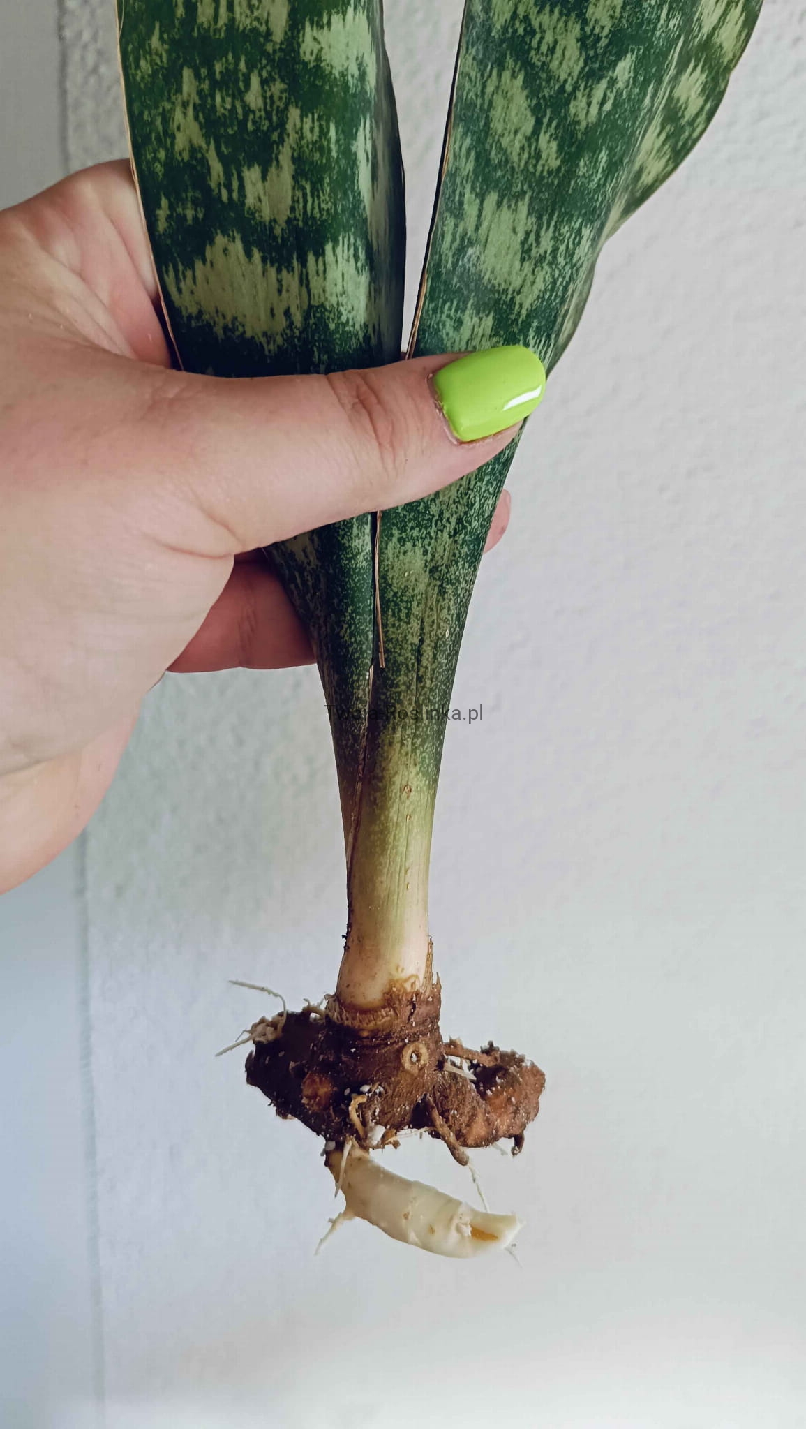 Bardzo rzadko dostępna w sprzedaży Sansevieria aubrytiana. To wysoka roślina o szerokich liściach z charakterystycznymi plamkami.