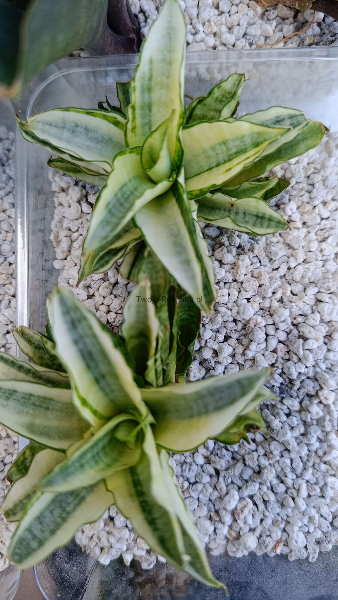 Roślina nie jest dużych rozmiarów. Posiada wariegację w bardzo jasnym kolorze.
