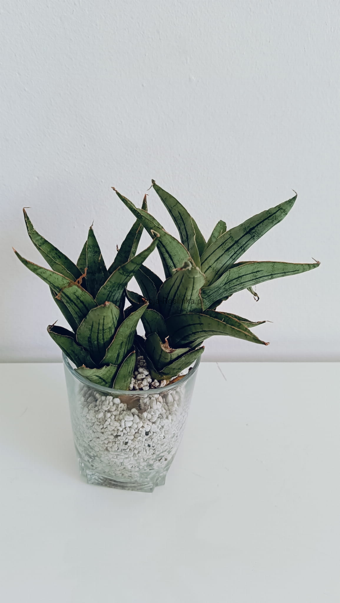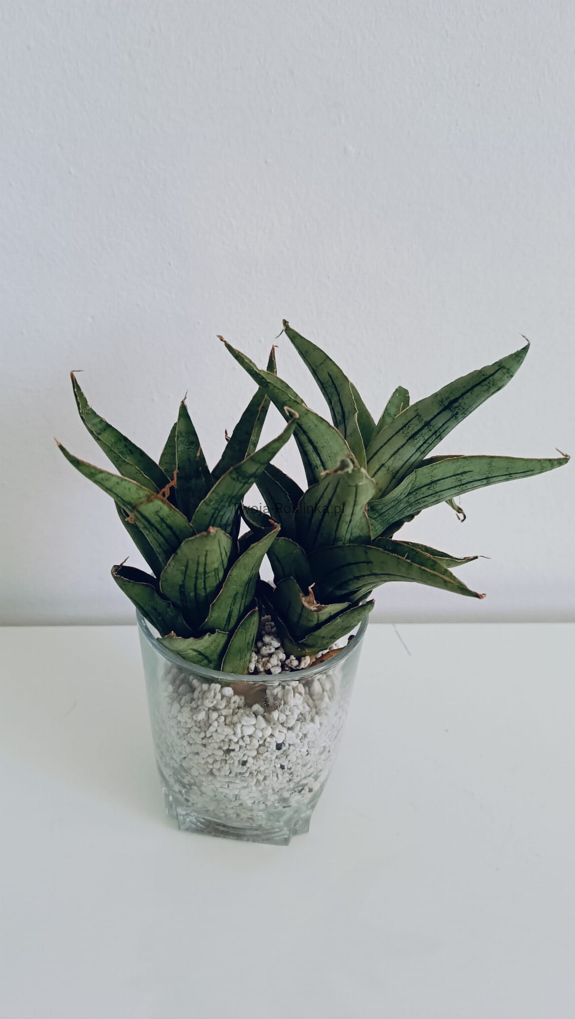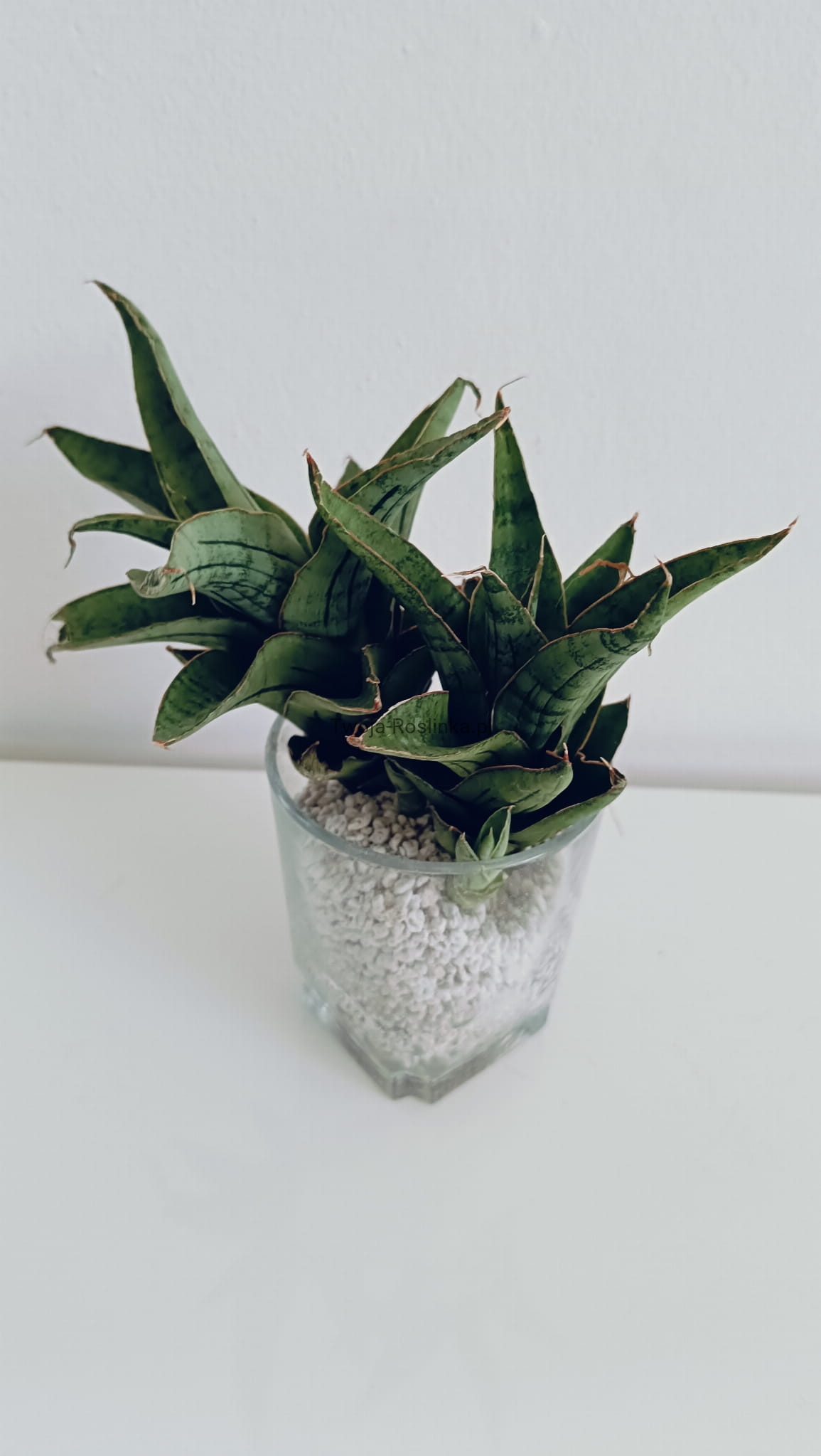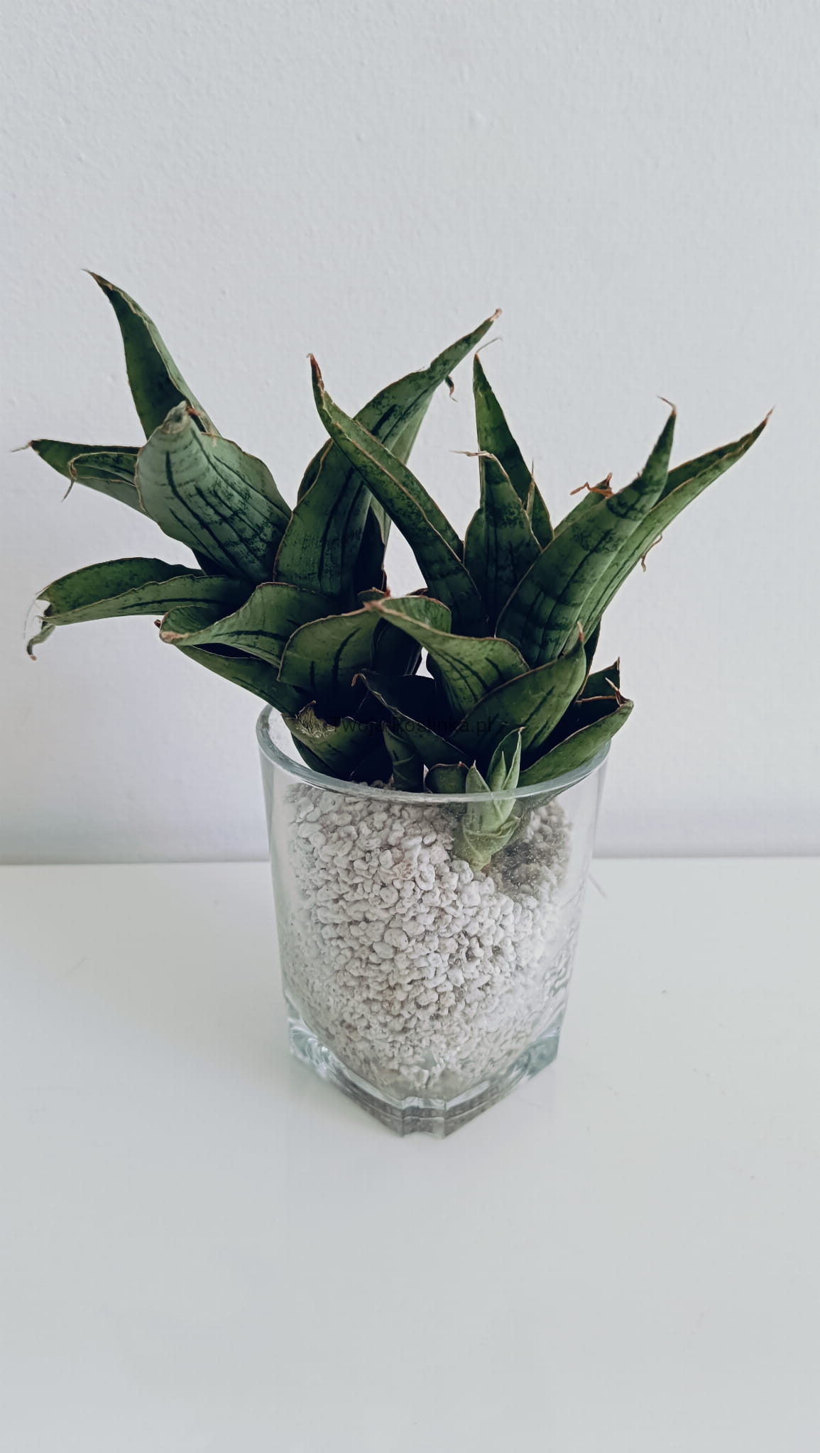 Ta ciekawa hybryda sansevierii rośnie w formie wieży. Obie z oferowanych sadzonek są w zestawie z maluchami.